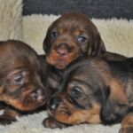 29.06.21 Gestern waren die Dackel-Welpen schon drei Wochen alt. Sie haben sich prima entwickelt, haben sehr gute Gewichte und fangen langsam an, ihre kleine Welt zu entdecken. Bislang verlief alles völlig problemlos, sodass sie in ein paar Tagen in das Welpenzimmer umziehen können.